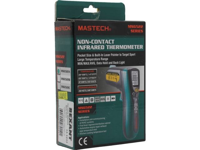 MASTECH MS6522А Бесконтактный инфракрасный термометр (-20~300°C ±(2%+2), AAAx2) (13-1233)