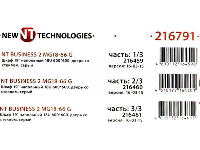 • NT BUSINESS 2 MG18-66 G Шкаф 19 напольный 18U 600*600, дверь со стеклом, серый (3ч)