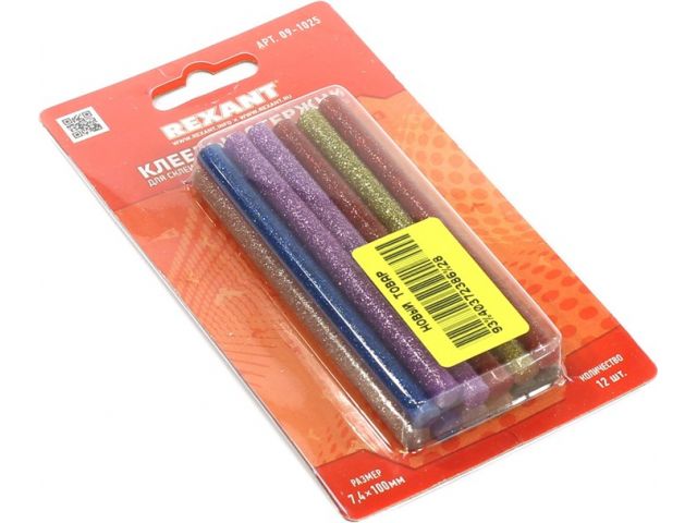 Rexant 09-1025 Клеевые стержни (12 шт, 7.4x100 мм, цветной с блёстками, 6500Па•с, 80°C)
