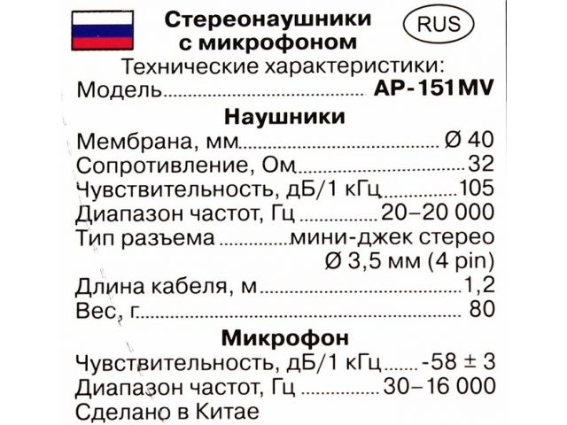 Тип оборудования краткийНаушники с микрофоном