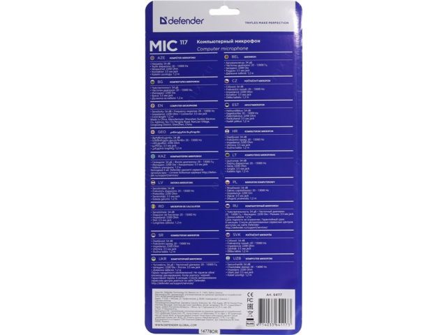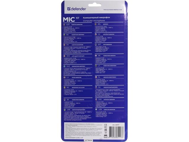 Defender Микрофон компьютерный MIC-117 черный, кабель 1.8 м