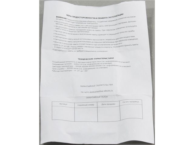 | ПРЕДУПРЕЖДЕНИЕ | Некоторые лампы обладают плавающими характеристиками и могут незначительно поменять характеристики с очередной поставкой. Характеристики и фотографии, приведенные нами, имеют справочный характер и могут отличаться при получении. Просьба проверять соответствие товара при выдаче. |