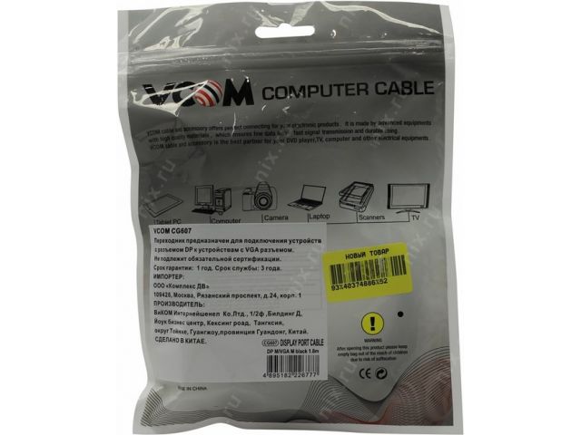 DisplayPort - VGA Переходник VCOM CG607 1.8 м.