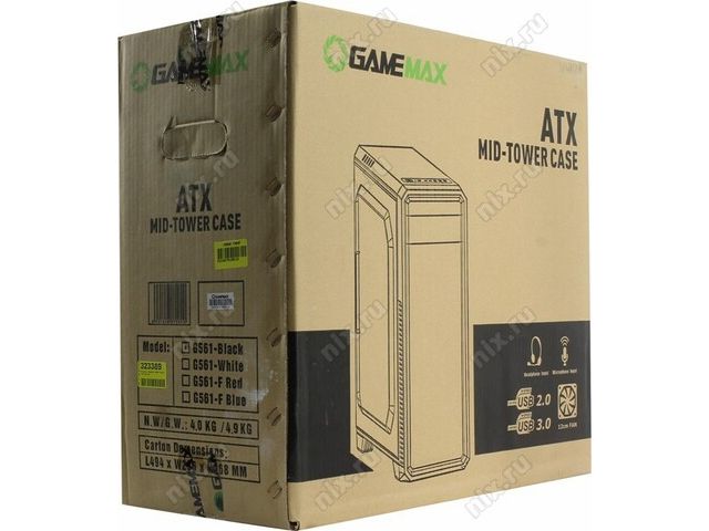 Miditower GameMax G561 (Blue LED) Black ATX без БП, с окном