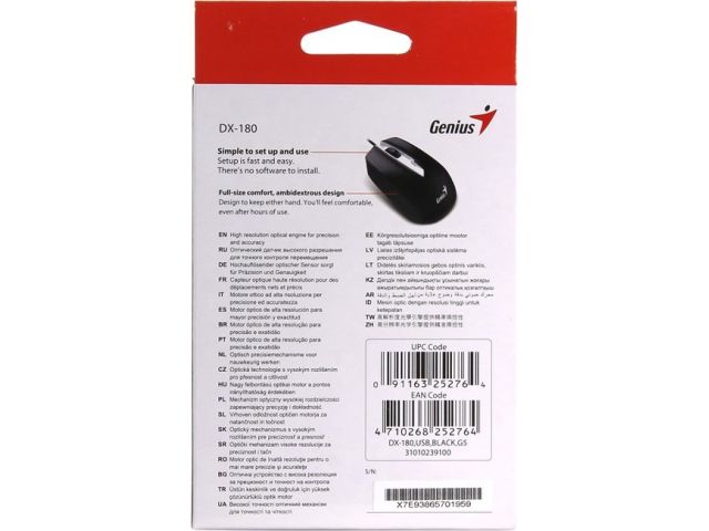 Genius Optical Mouse DX-180 Black  (RTL) USB 3btn+Roll (31010239100/31010016400)