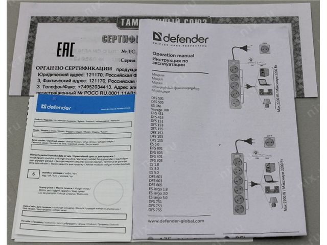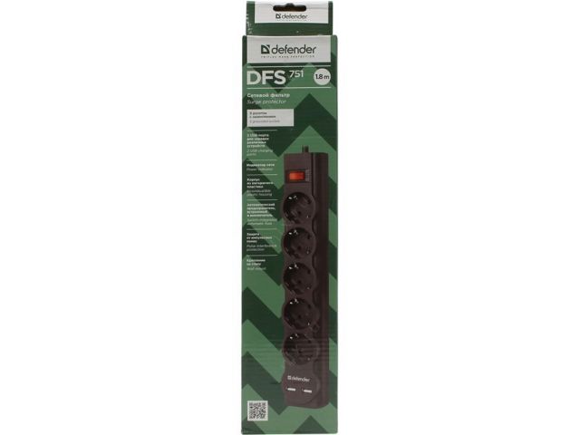 Сетевой фильтр 2.2 кВт Defender DFS 751 5 розеток евростандарт с заземлением 1.8 метра