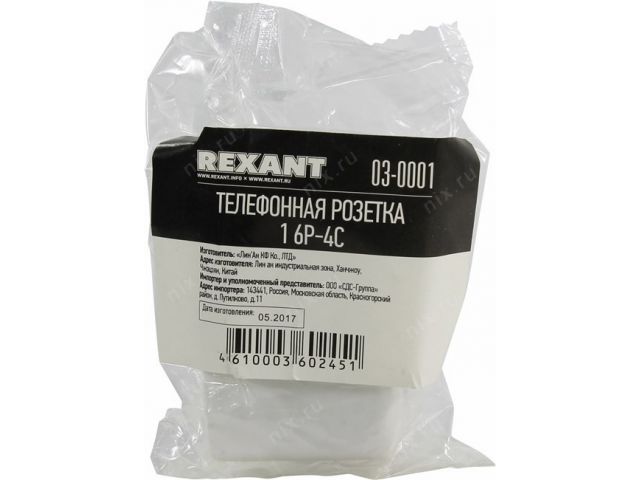 Rexant 03-0001  Розетка внешняя телефонная RJ-11(6P4C)