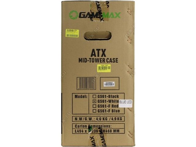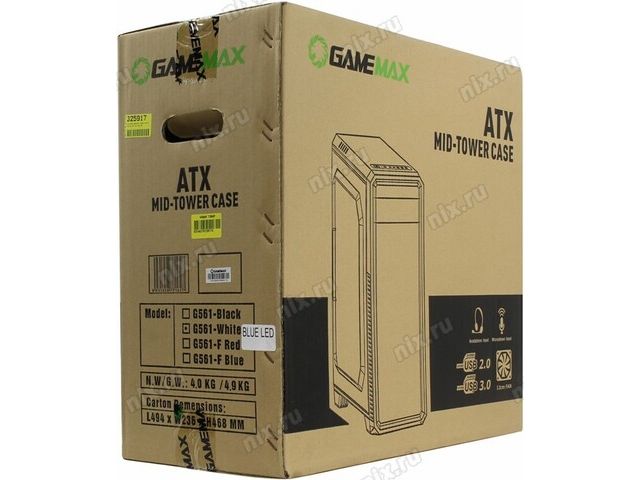 Miditower GameMax G561-White (Blue LED) ATX без БП, с окном