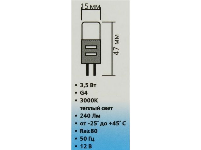 | Цоколь | G4 (капсульный) 12 В |