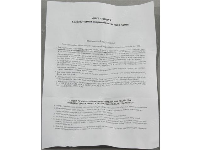 | Тип оборудования | Лампа светодиодная |