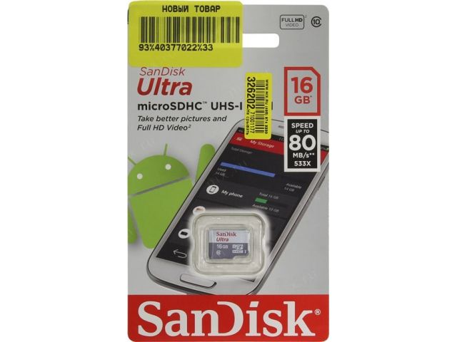 Флеш-накопитель Sandisk Ultra Android microSDHC 16GB 80MB/s Class 10