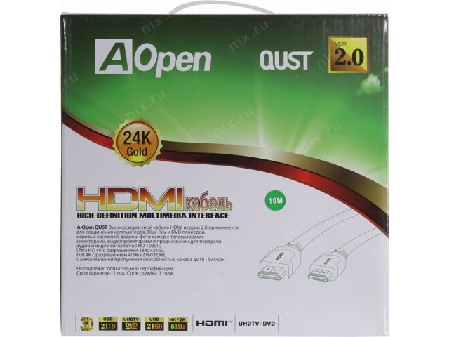 AOpen ACG711DW-10м Кабель HDMI to HDMI (19M -19M) 10м 2 фильтра ver2.0