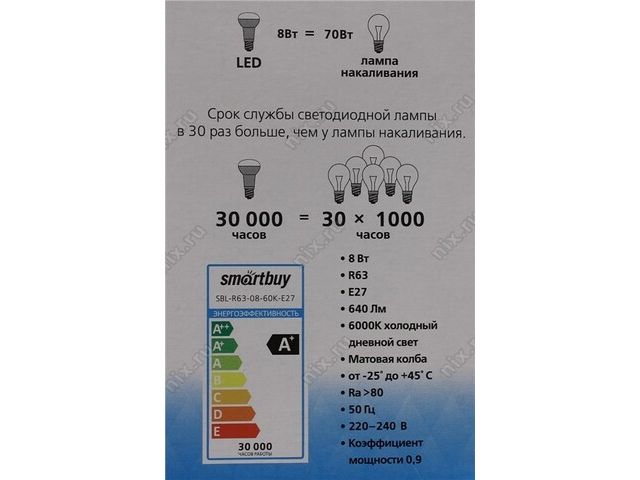 | Лампа светодиодная SmartBuy SBL-R63-08-60K-E27 |