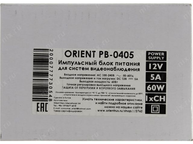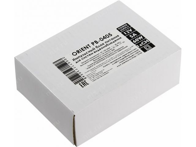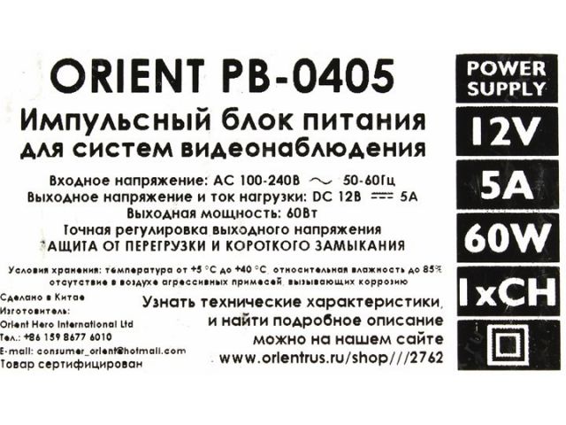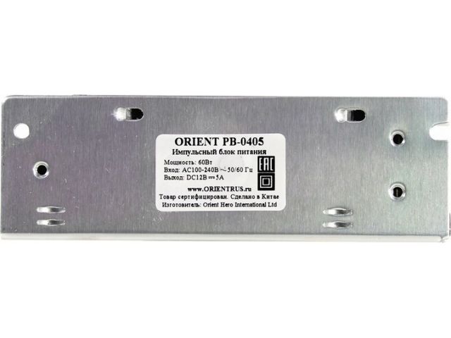 Блок питания Orient PB-0405 (Вх. AC100-240V, Вых. DC12V, 5000mA) в металлическом корпусе, 1 выход