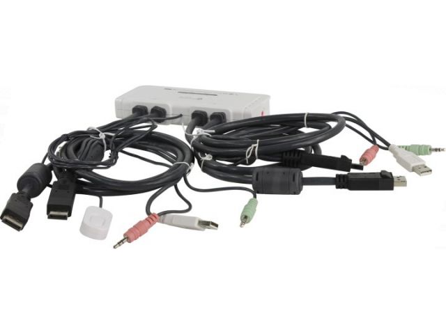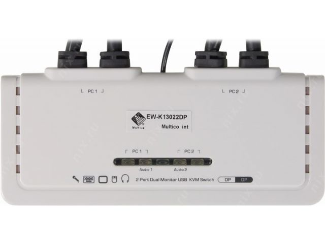 Multico EW-K13022DP 2-port Dual Monitor USB KVM Switch (клавUSB+мышьUSB+DP+Audio, проводнойПДУ, кабели несъемные)