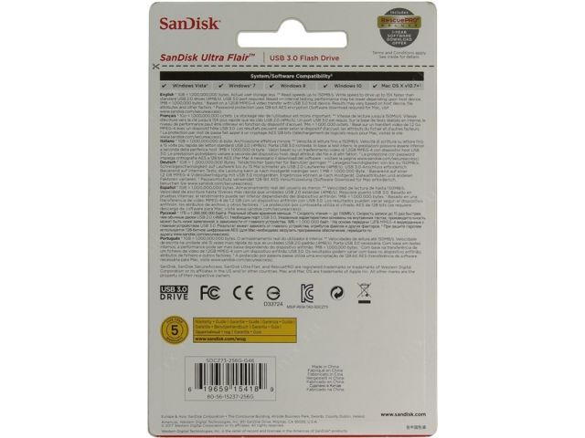 Флешка SanDisk Ultra Flair SDCZ73-256G-G46 USB 256 ГБ