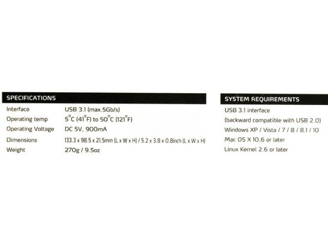 | Интерфейс внешнего HDD | USB 3.1 Gen1 5 Gbps (=USB 3.0) |