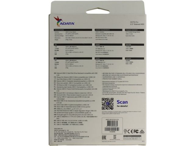 | Внешний жесткий диск 2.5 ADATA HD710 Pro 2 Тб AHD710P-2TU31-CYL USB 3.1 Gen1 5 Gbps (=USB 3.0) |