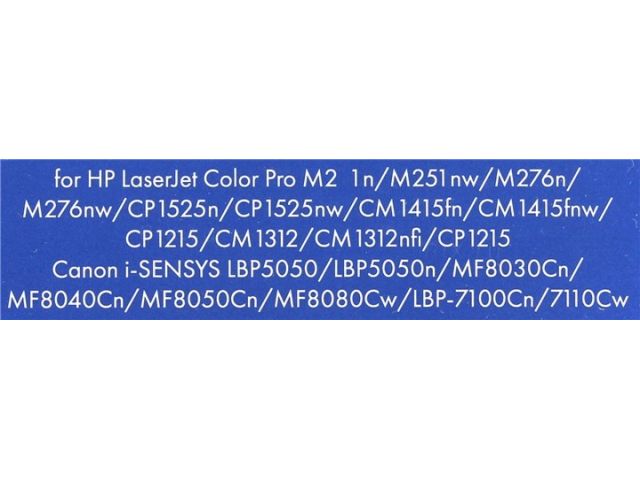 СовместимостьHP LaserJet Color Pro M251n, M251nw, M276n, M276nw, CP1525n, CP1525nw, CM1415fn, CM1415fnw, CP1215, CM1312, CM1312nfi, CP1215, Canon i-SENSYS LBP5050, LBP5050n, MF8030Cn, MF8040Cn, MF8050Cn, MF8080Cw, LBP-7100Cn, LBP-7110Cw