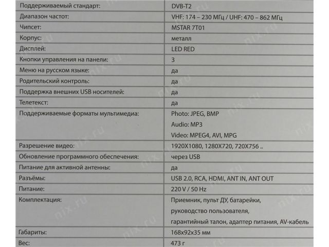 | Тип оборудования | Цифровая ТВ приставка с медиаплеером |