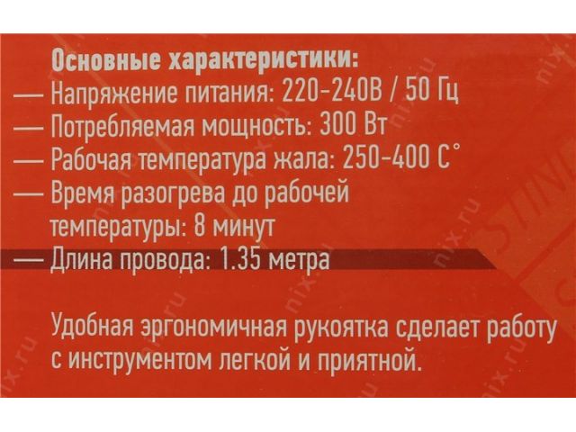 ПрочееРабочая температура: 250 - 400°С; время прогрева: 8 минут; Длина кабеля: 1.35 метра