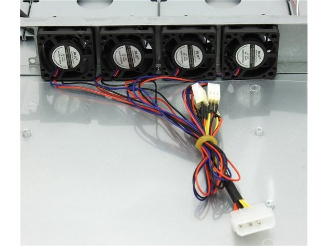 | Место для вентилятора на передней стенке | 4 вентилятора: 40 x 40 мм, расположены на перегородке в средней части корпуса |