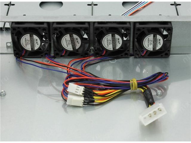 | Место для вентилятора на передней стенке | 4 вентилятора: 40 x 40 мм, расположены на перегородке в средней части корпуса |