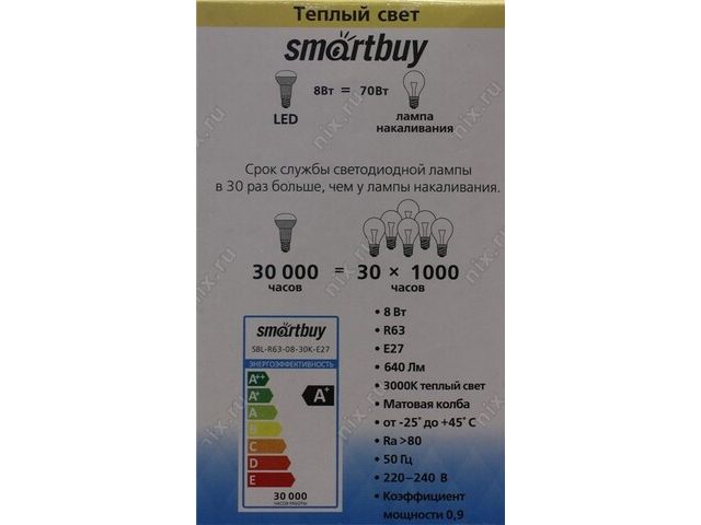 | Лампа светодиодная SmartBuy SBL-R63-08-30K-E27 |