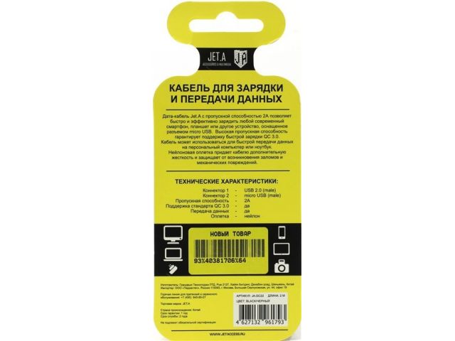 JETACCESS JA-DC22 2м Black Кабель USB 2.0 A-- micro-B 2м