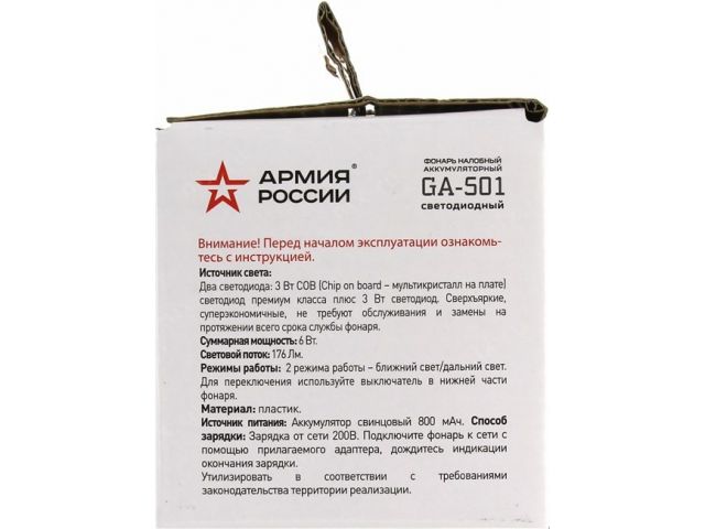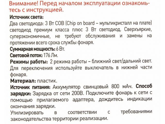 | Суммарная мощность светодиодов | 3 Вт + 3 Вт |