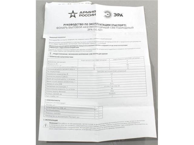 | Источник света | 1 мощный светодиод, 1 мощный составной светодиод (chip on board) |