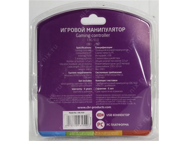Геймпад CBR CBG 910  (15кн., 2 мини-джойстика, USB)