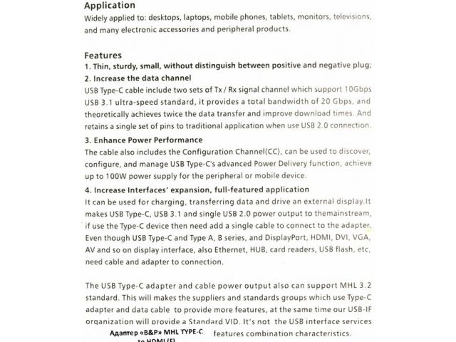 Тип оборудованияАдаптер MHL alternate mode USB Type C - HDMI
