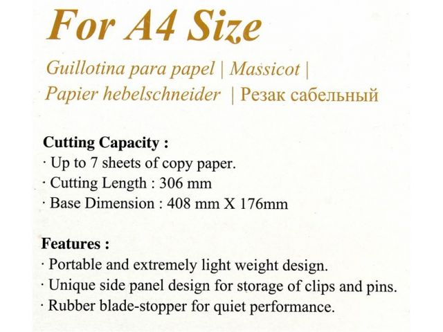 Max кол-во разрезаемых листов (80 г/м2)7 листов (стопа 0.7 мм)