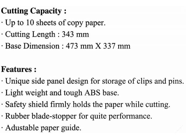 Max кол-во разрезаемых листов (80 г/м2)10 листов (стопа 1 мм)