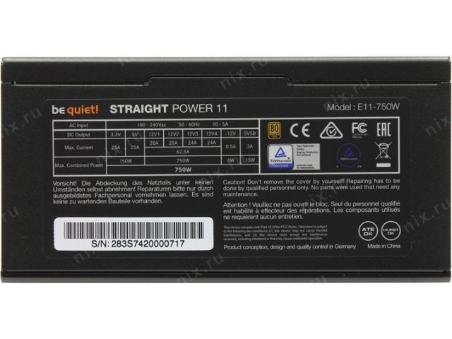 Блок питания be quiet! STRAIGHT POWER 11 E11-750W 750W ATX (24+8+2x4+4x6/8пин)  BN283 Cable Management