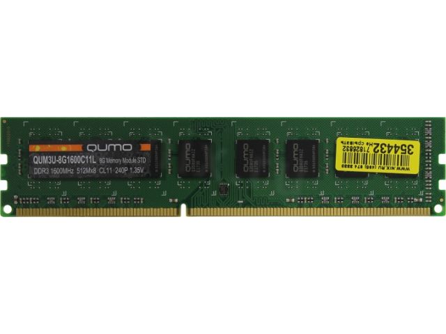 • QUMO QUM3U-8G1600С11L DDR3 DIMM 8Gb  PC3-12800  CL11, Low Voltage