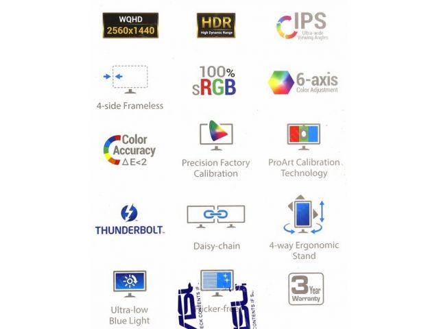 27   ЖК монитор ASUS PA27AC BK (LCD, 2560x1440, HDMI, DP, Thunderbolt, USB3.0 Hub)