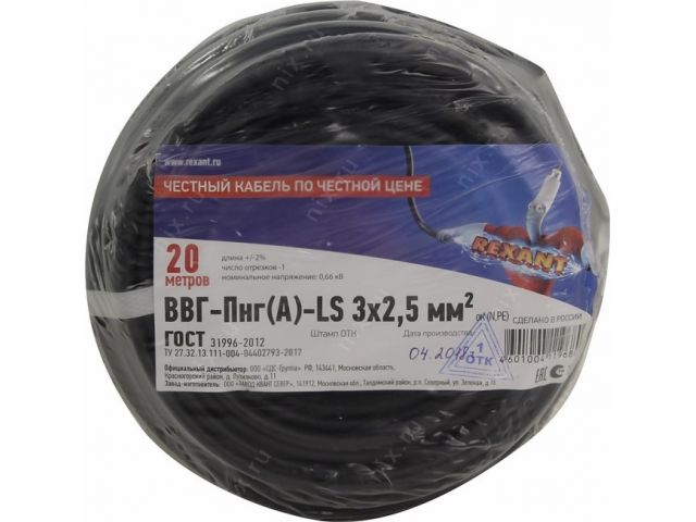 Кабель силовой Rexant 01-8272-20 Медь 3 x 2.5 мм2 20 метров