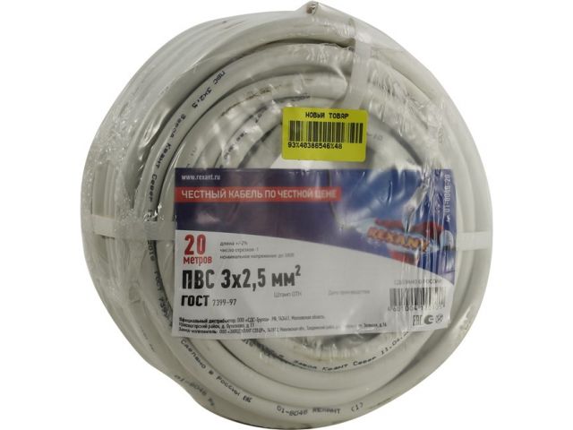 Кабель силовой, ПВС 3х2.5мм2 бухта 20м  Rexant  01-8048-20