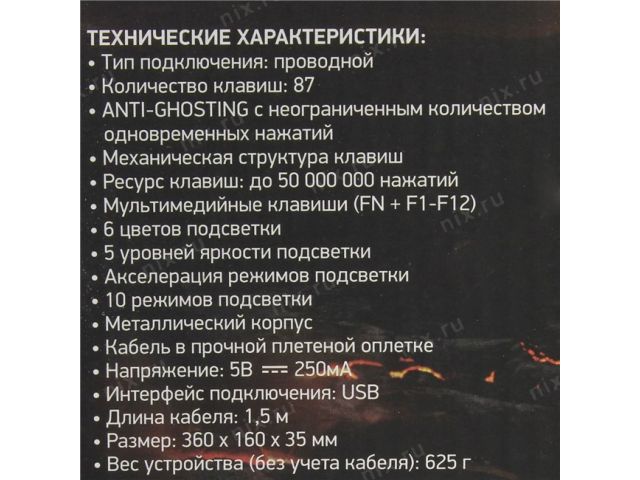Клавиатура OKLICK 960G Black USB 87КЛ, подсветка клавиш  499575
