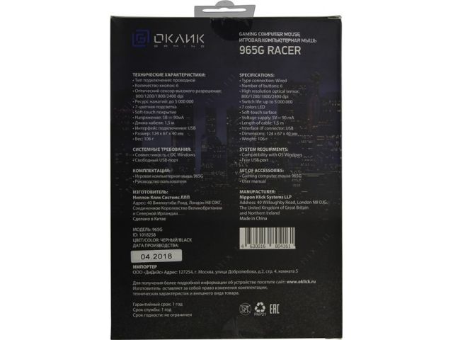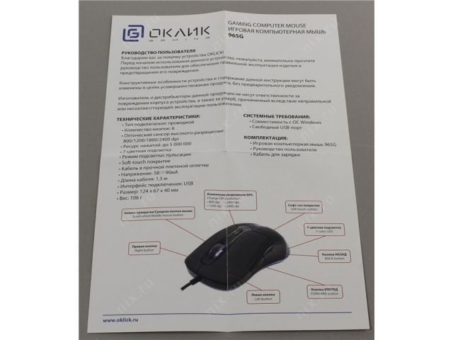 OKLICK Gaming Mouse 965G  Black  (RTL) USB 6btn+Roll 1018258