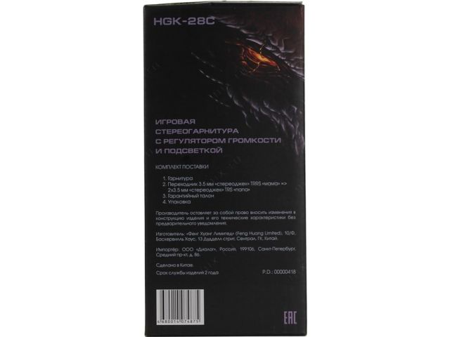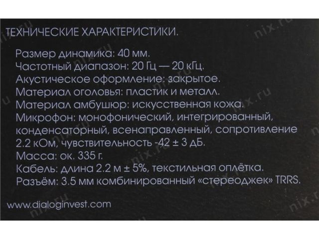Наушники с микрофоном Dialog Gan-Kata HGK-28C (шнур 2.2м, с регулятором громкости)