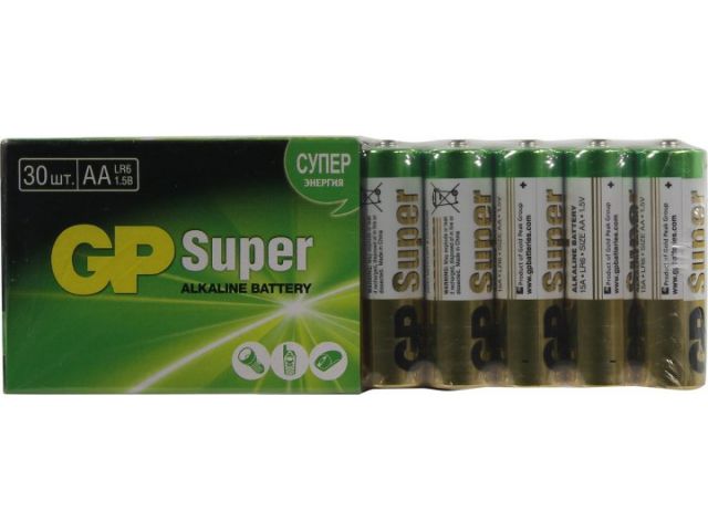 GP Super 15A-2CRVS30/B30/GP15AA21-2CRSWC30 (LR6) Size AA, 1.5V, щелочной (alkaline) уп. 30шт