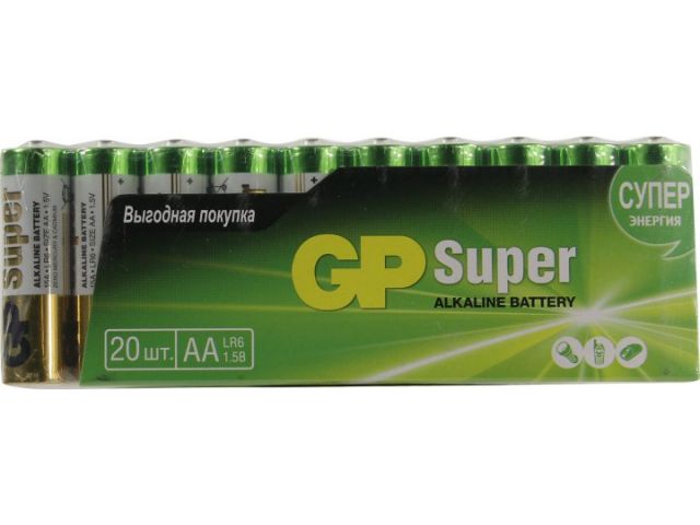 GP Super 15A-2CRVS20/15AA21-2CRSWC20 (LR6) Size AA, 1.5V, щелочной (alkaline) уп. 20шт