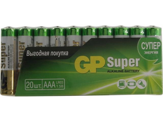GP Super 24A-20 (LR03) Size AAA, 1.5V, щелочной (alkaline) уп. 20 шт