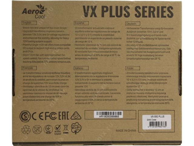 Блок питания AeroCool VALUE Series VX PLUS 550 550 Вт (RTL)