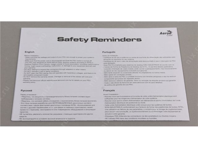 Максимальная нагрузка+3.3V - 18A, +5V - 16A, +12V - 38A, +5VSB - 2.5A, -12V - 0.3A; Комбинированная нагрузка: +3.3V&+5V - 120 Вт