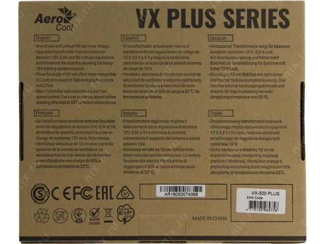 Блок питания AeroCool VALUE Series VX PLUS 500 500 Вт (RTL)