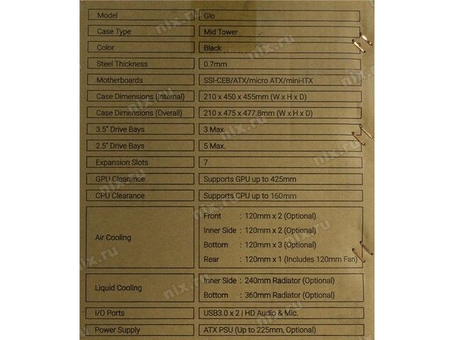 | Ключевые особенности | Скрытая укладка шлейфов, Быстрый доступ к опорной пластине кулера, Установка накопителей позади платы |